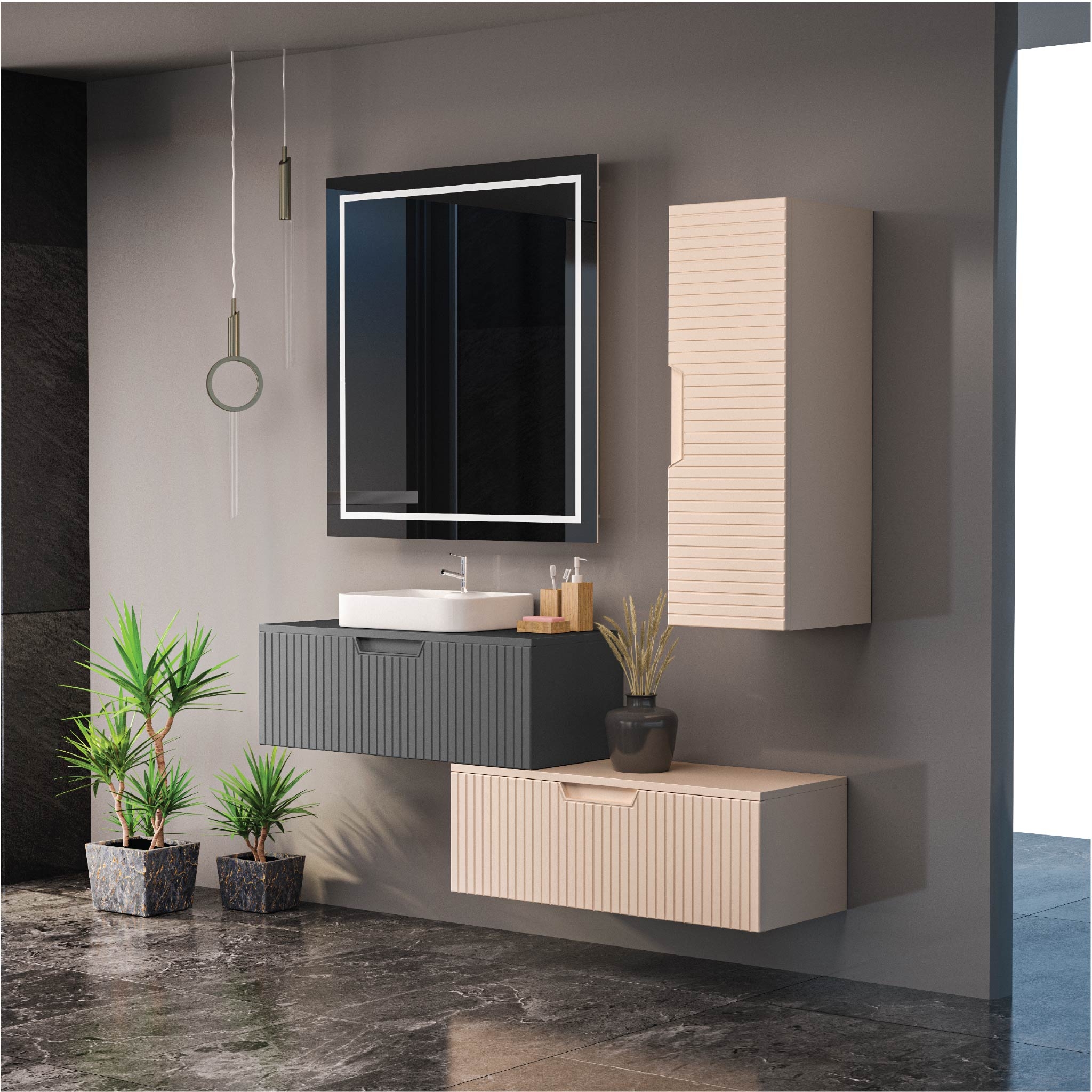 Boy Dolap Gövde: Göktaş Mebran Soft Beyaz / Soft Antrasit